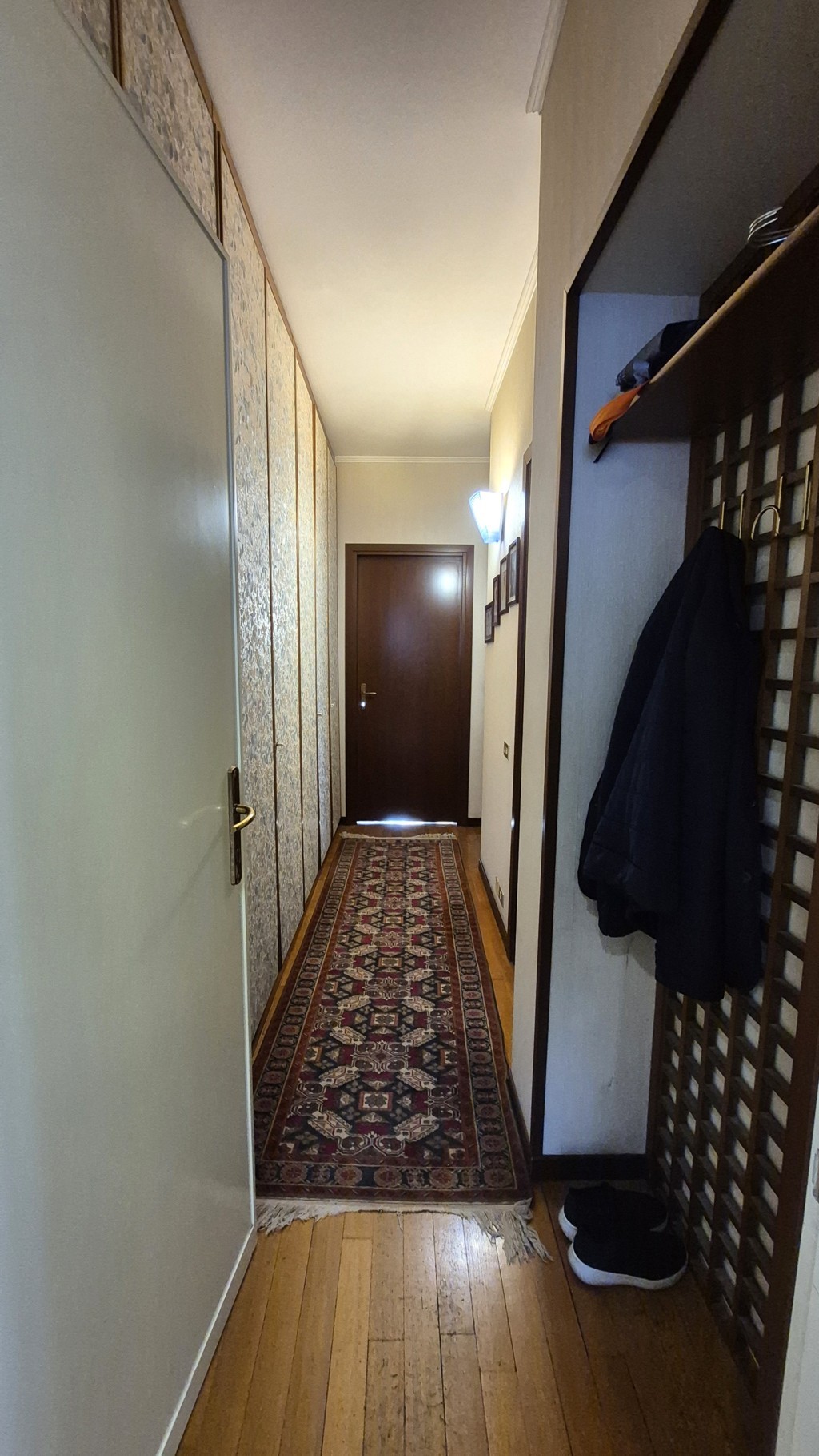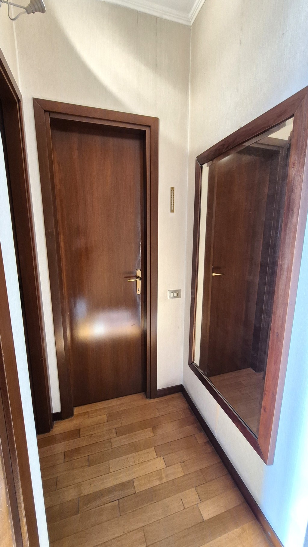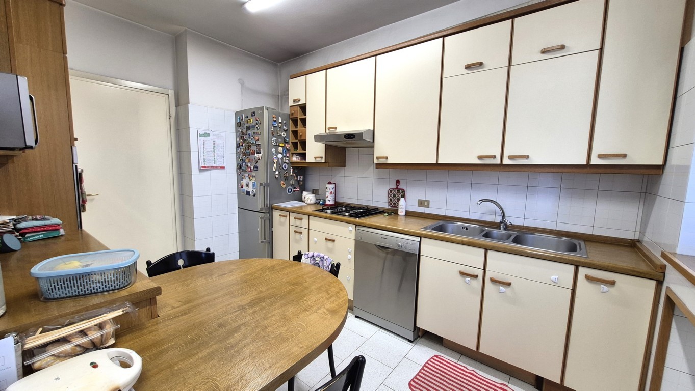 L’appartamento, con una superficie complessiva di circa 160 mq, è composto al piano quarto dall’ingresso, un ampio soggiorno con finestre esposte a Sud-Ovest, la cucina abitabile con vano dispensa, un corridoio notte arredato con armadiatura a muro, due camere da letto, doppi servizi finestrati, terrazzino di circa 12 mq con accesso dalla zona giorno ed un balcone a servizio della camera da letto secondaria.