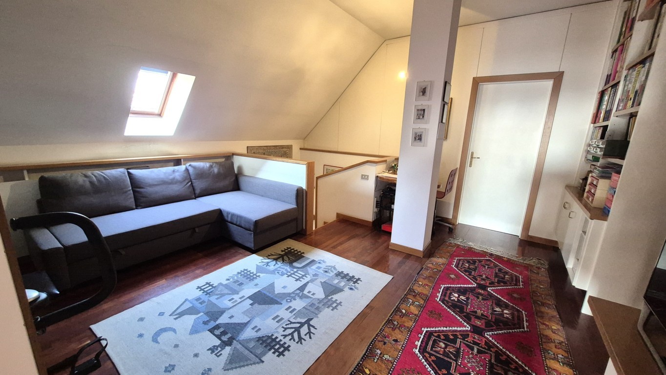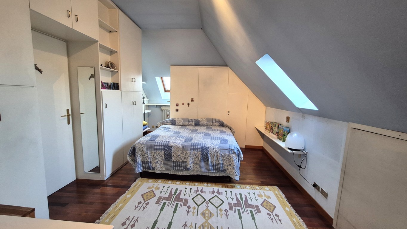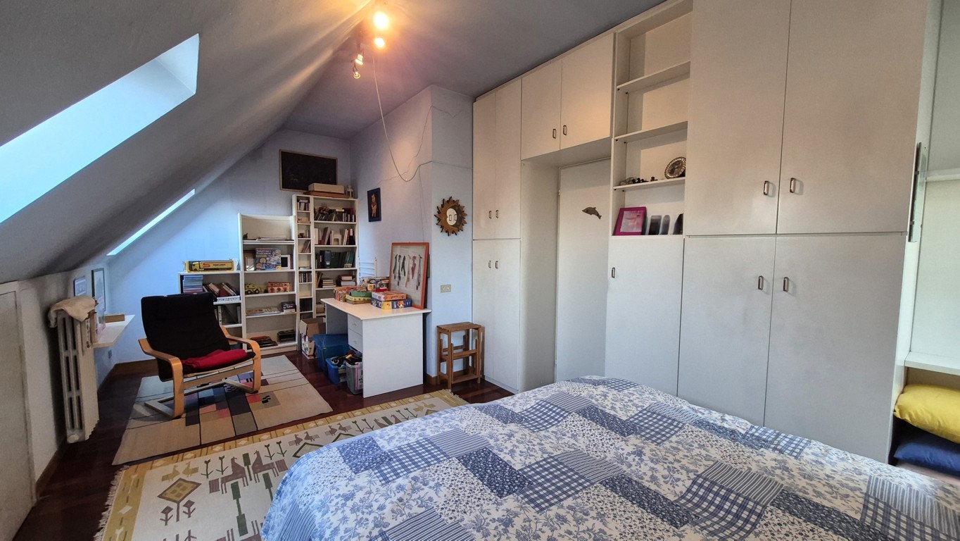 Al piano superiore troviamo la mansarda, collegata al piano inferiore mediante comoda scala a rampa in muratura e provvista inoltre di ingresso indipendente; la disposizione attuale vede un ambiente destinato a studio, una camera da letto, un grande locale lavanderia ed un bagno finestrato con doccia. Le parti più basse sono state sfruttate come ripostigli.
