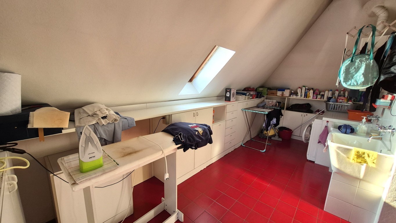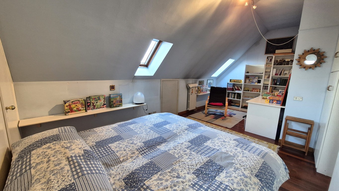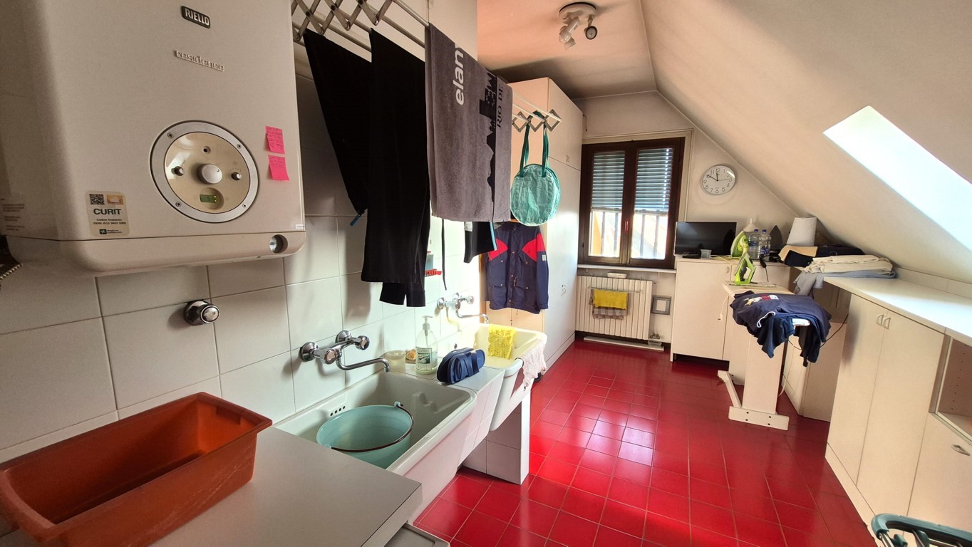Al piano superiore troviamo la mansarda, collegata al piano inferiore mediante comoda scala a rampa in muratura e provvista inoltre di ingresso indipendente; la disposizione attuale vede un ambiente destinato a studio, una camera da letto, un grande locale lavanderia ed un bagno finestrato con doccia. Le parti più basse sono state sfruttate come ripostigli.