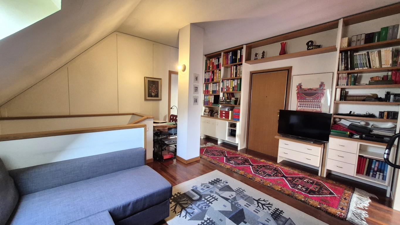 In signorile contesto edificato all’inizio degli anni Ottanta, caratterizzato da ampio parco interno ed ubicato in posizione servitissima, proponiamo attico su 2 livelli molto luminoso grazie alla tripla esposizione. La collocazione della palazzina all’interno del condominio permette all’appartamento di godere di una visuale aperta, senza stabili adiacenti.